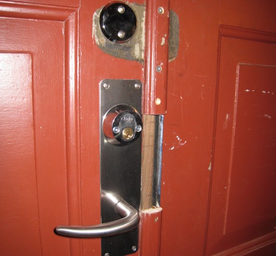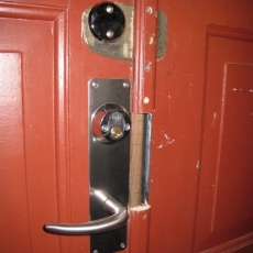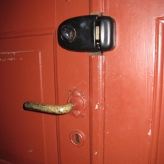 En andelsforening ville efter et indbrud, have skiftet nogle kasselåse ud, og sat låsekasser med cylindere og langsskilte i, istedet. De ville selv stå for maling, så det mangler.